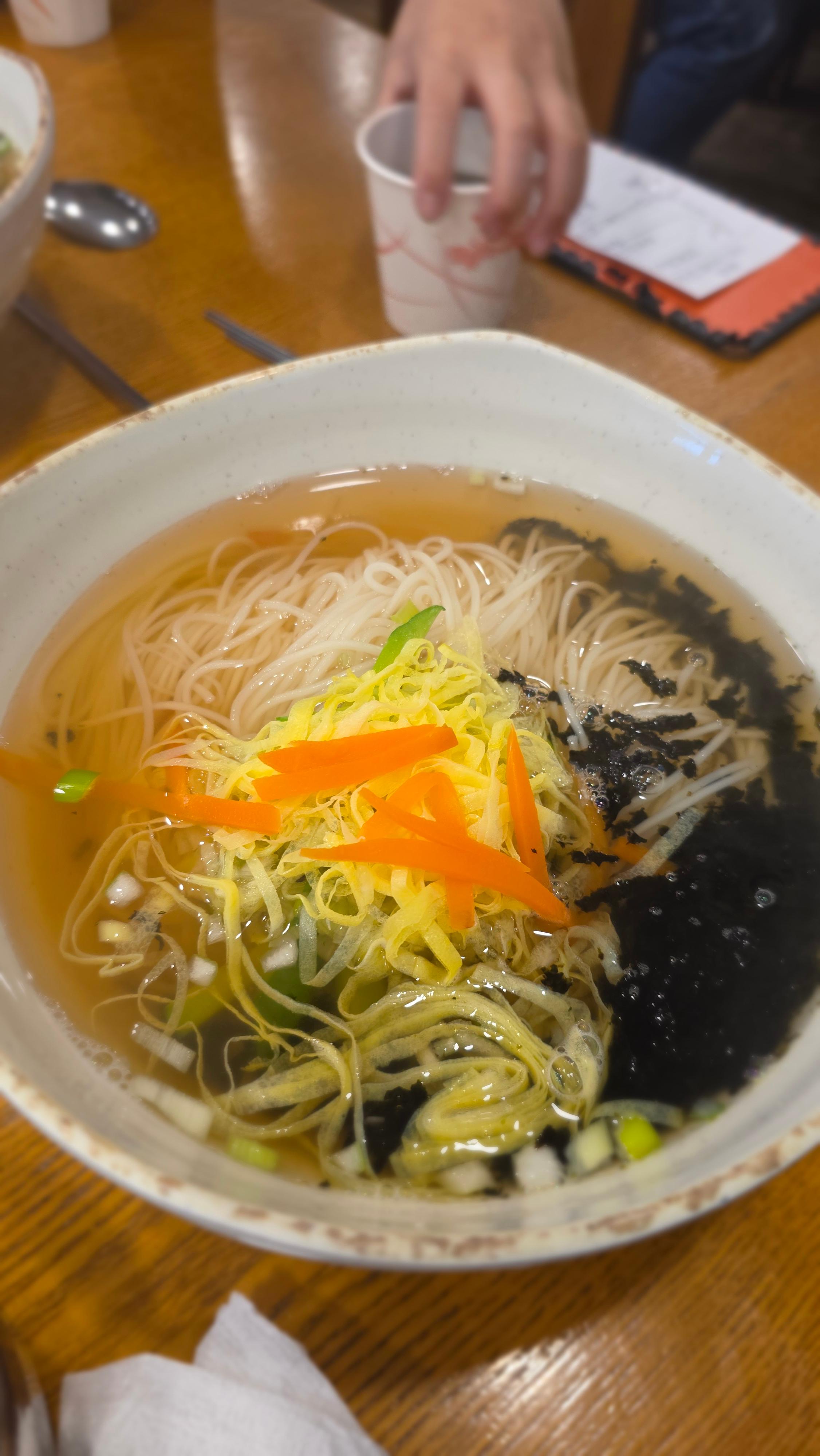 심플하지만 깊은 맛을 느낄 수 있는 잔치국수! 맑은 육수에 담백함이 살아있었어요. 간이 과하지 않고 자연스러운 맛이라 끝까지 질리지 않고 먹을 수 있었습니다. 고명으로 올라간 얇게 채 썬 계란지단과 김, 그리고 약간의 채소가 국수와 잘 어울렸어요. 육칼에 비해 담백한 맛을 원하시는 분들께 추천합니다!
