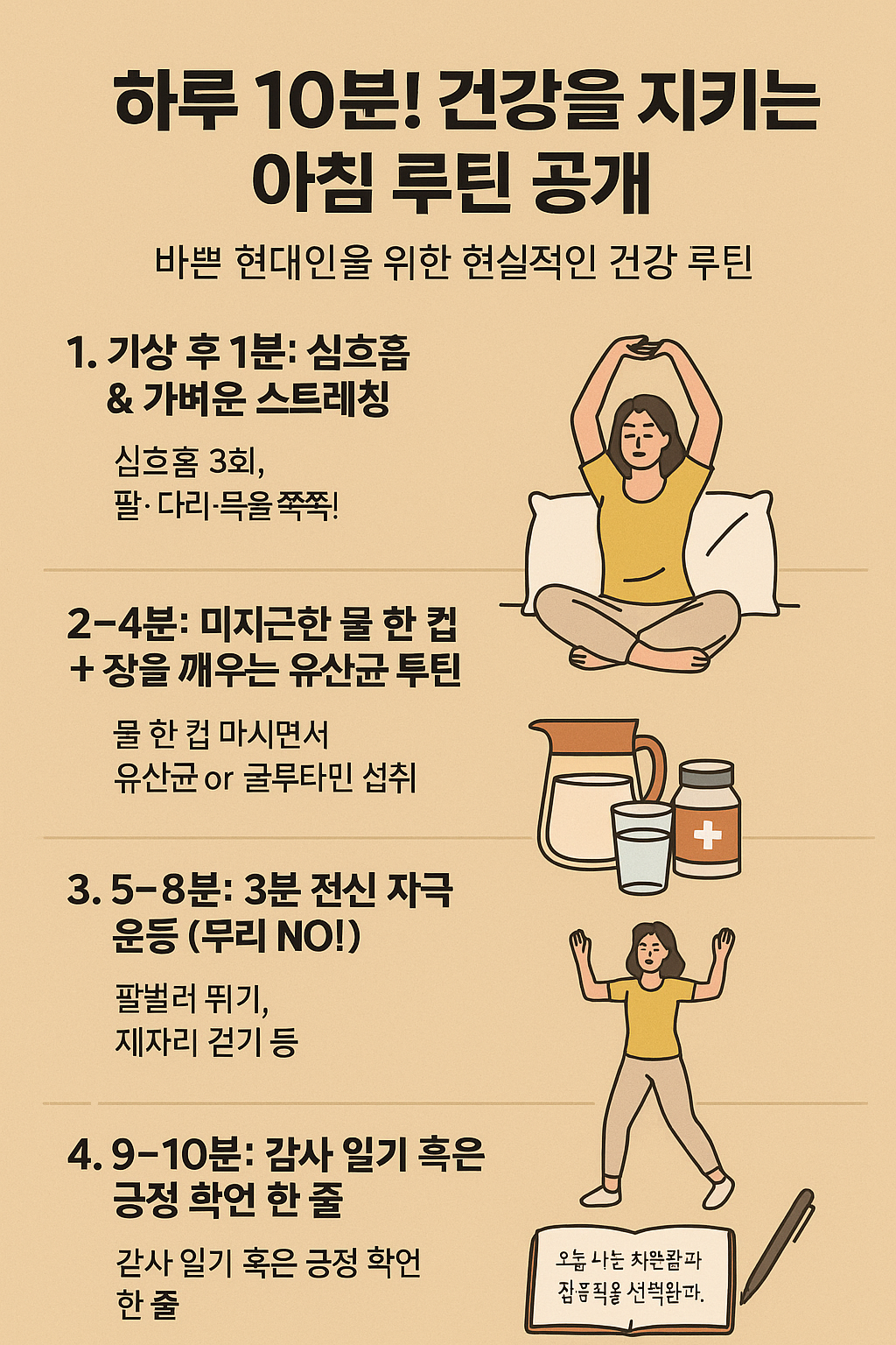 무리하지 않고도 건강을 챙길 수 있는 아주 실용적인 루틴입니다.